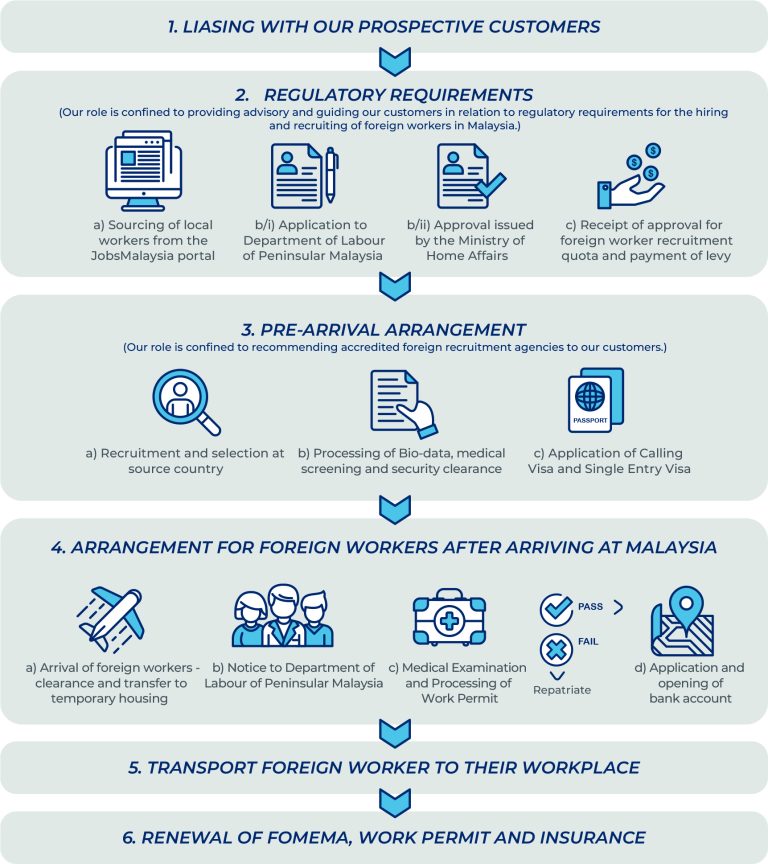 and ensuring compliance with Malaysian immigration laws. We ensure that workers are